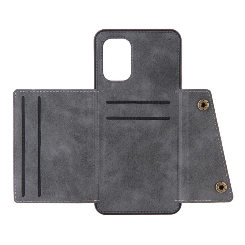 Για OnePlus 8T Διπλή πόρπη PU + TPU Shockproof μαγνητική προστατευτική θήκη με υποδοχές καρτών & κάτοχος (γκρι)