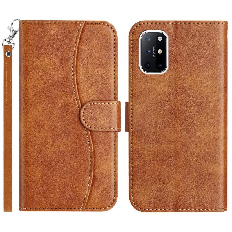 For OnePlus 8T Dual-Folded S-shape Leather Phone Case(Brown)