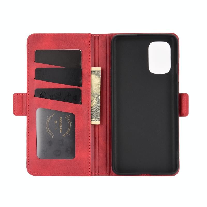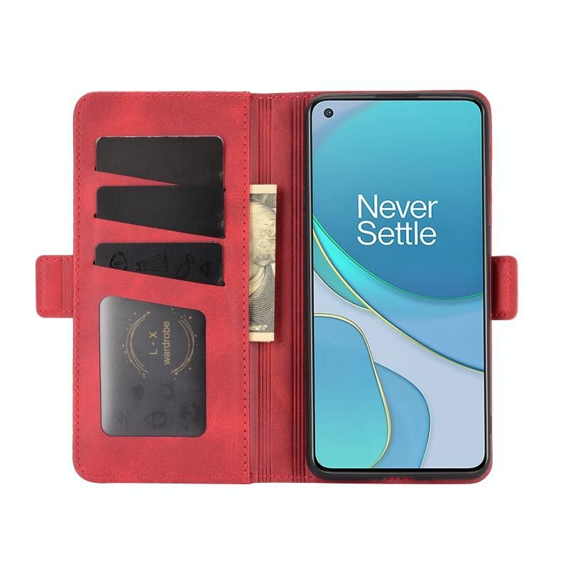 Για OnePlus 8T Διπλής όψης μαγνητική πόρπη οριζόντια Flip δερμάτινη θήκη με κάτοχο & υποδοχές καρτών & πορτοφόλι (κόκκινο)