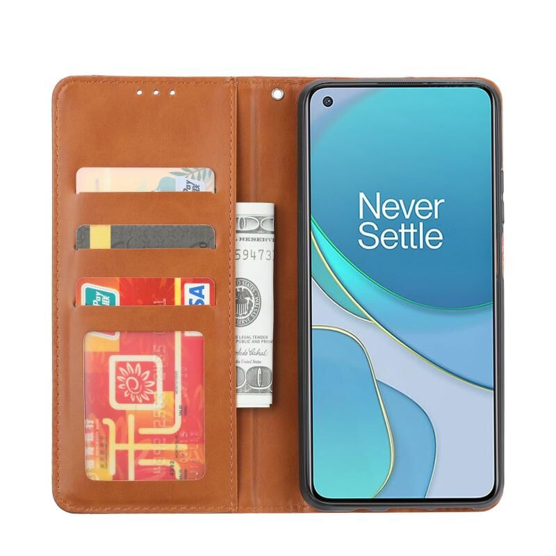 Για OnePlus 8T Knead δέρμα υφή οριζόντια Flip δερμάτινη θήκη με πλαίσιο φωτογραφιών & κάτοχος & υποδοχές καρτών & πορτοφόλι (καφέ)