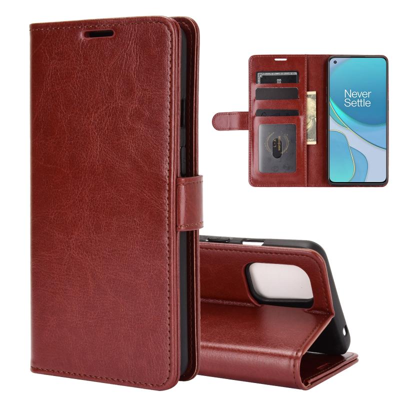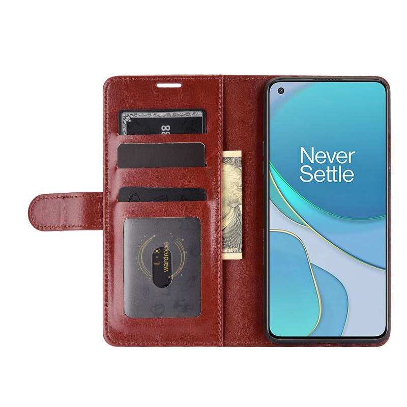 For OnePlus 8T R64 Texture Single Horizontal Flip Protective Case with Holder & Card Slots & Wallet& Photo Frame(Brown)
