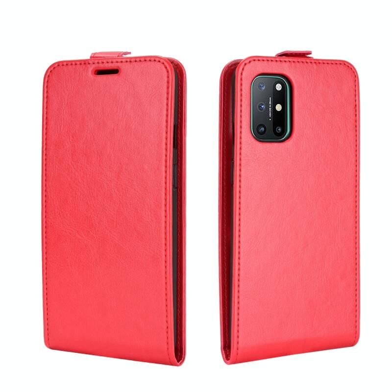 Για OnePlus 8T R64 Υφή ενιαία κάθετη Flip δέρμα προστατευτική θήκη με υποδοχές για κάρτες & πλαίσιο φωτογραφιών (κόκκινο)