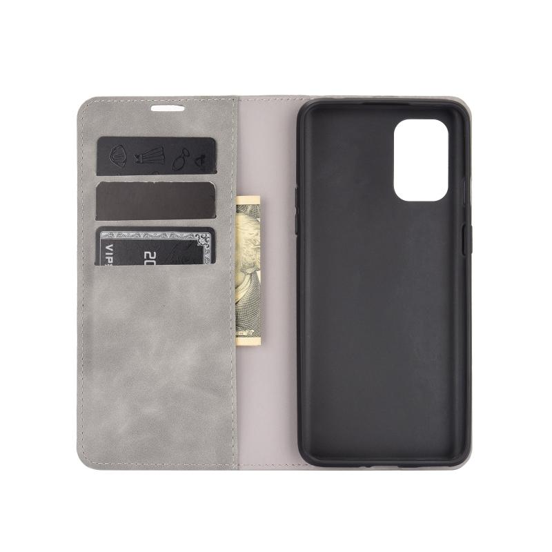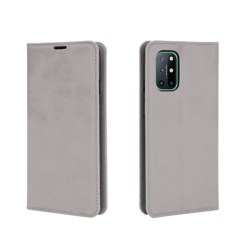 For OnePlus 8T Retro-skin Business Magnetic Suction Leather Case with Holder & Card Slots & Wallet(Grey)