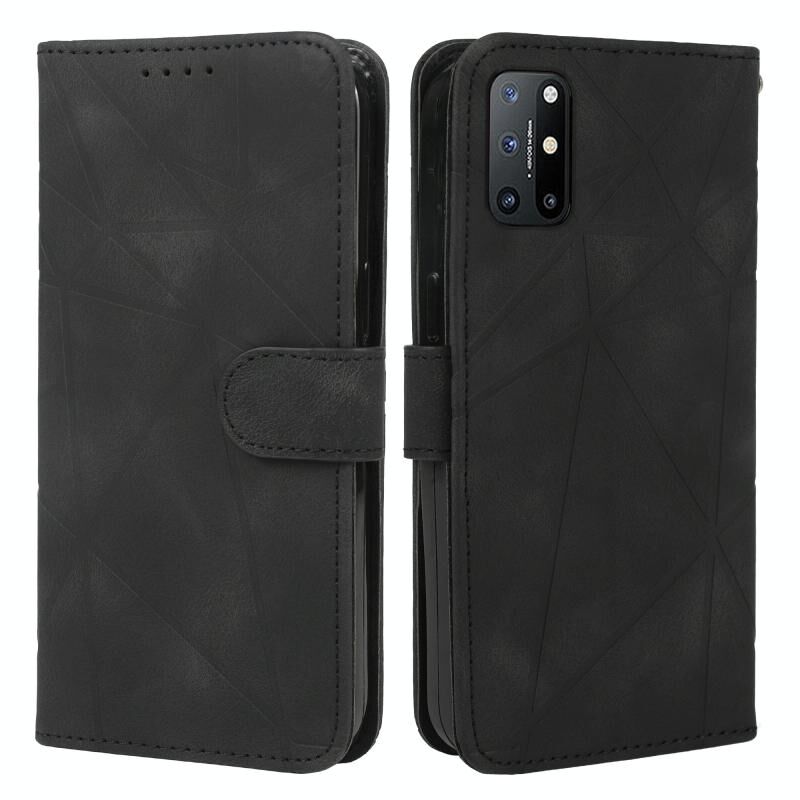 Για OnePlus 8T δέρμα αίσθηση γεωμετρικές γραμμές δέρμα τηλέφωνο υπόθεση (μαύρο)