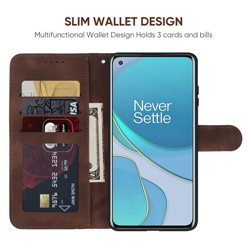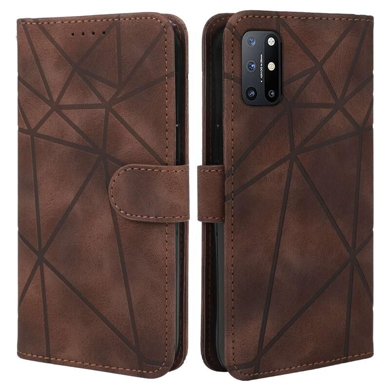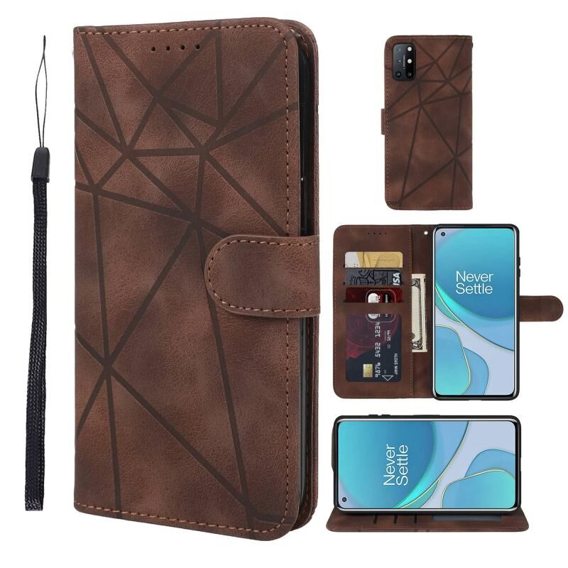 Για OnePlus 8T δέρμα αίσθηση γεωμετρικές γραμμές δέρμα τηλέφωνο υπόθεση (καφέ)