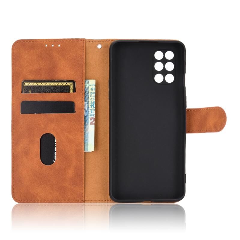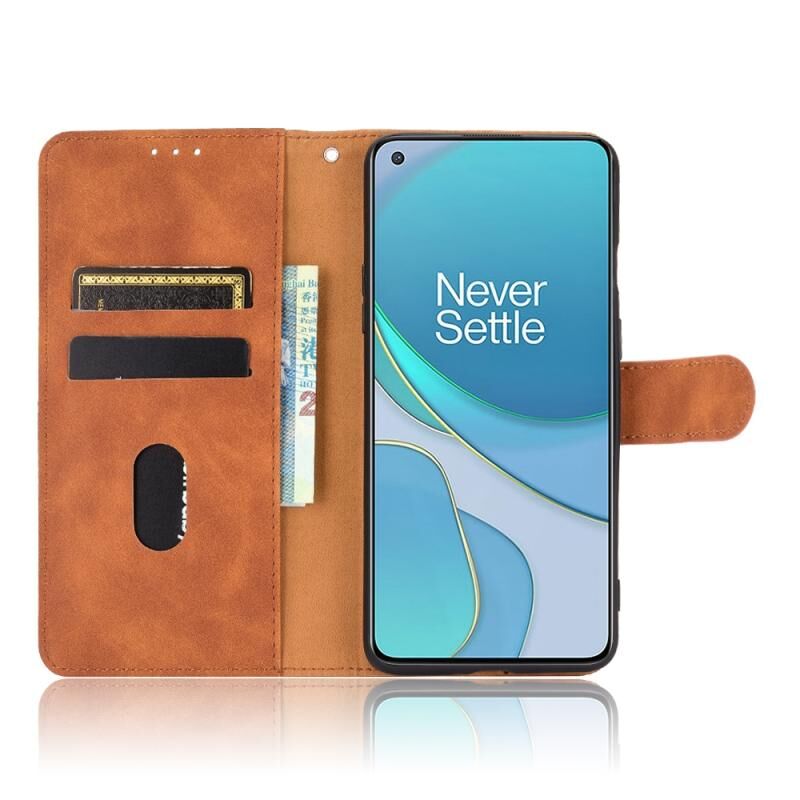 Για OnePlus 8T Αμιγές χρώμα δέρμα αίσθηση μαγνητική πόρπη οριζόντια Flip μοσχάρι υφή PU δέρμα υπόθεση με κάτοχο & υποδοχές καρτών & πορτοφόλι (καφέ)