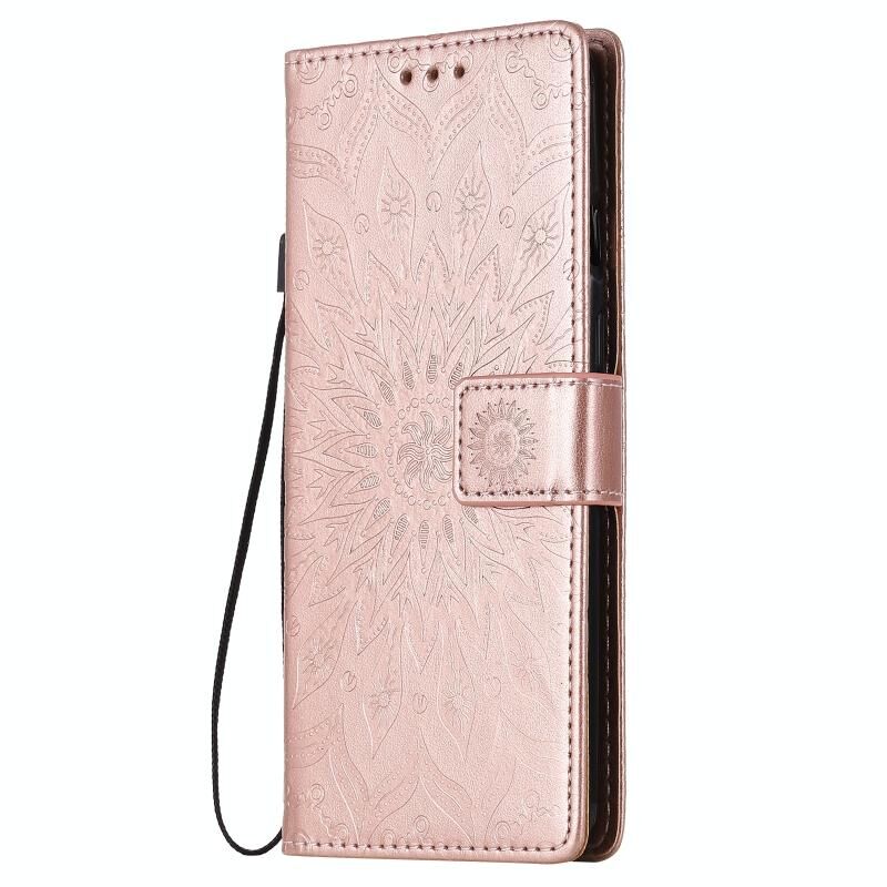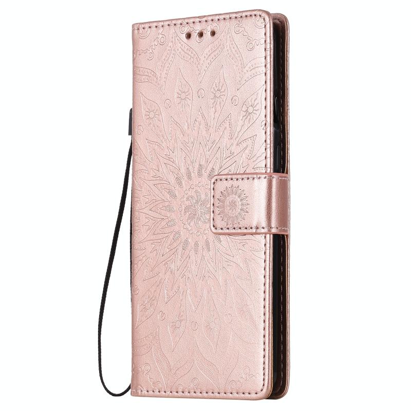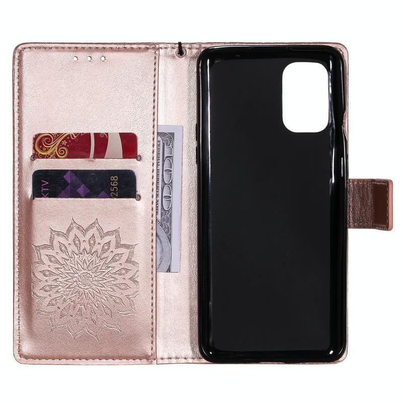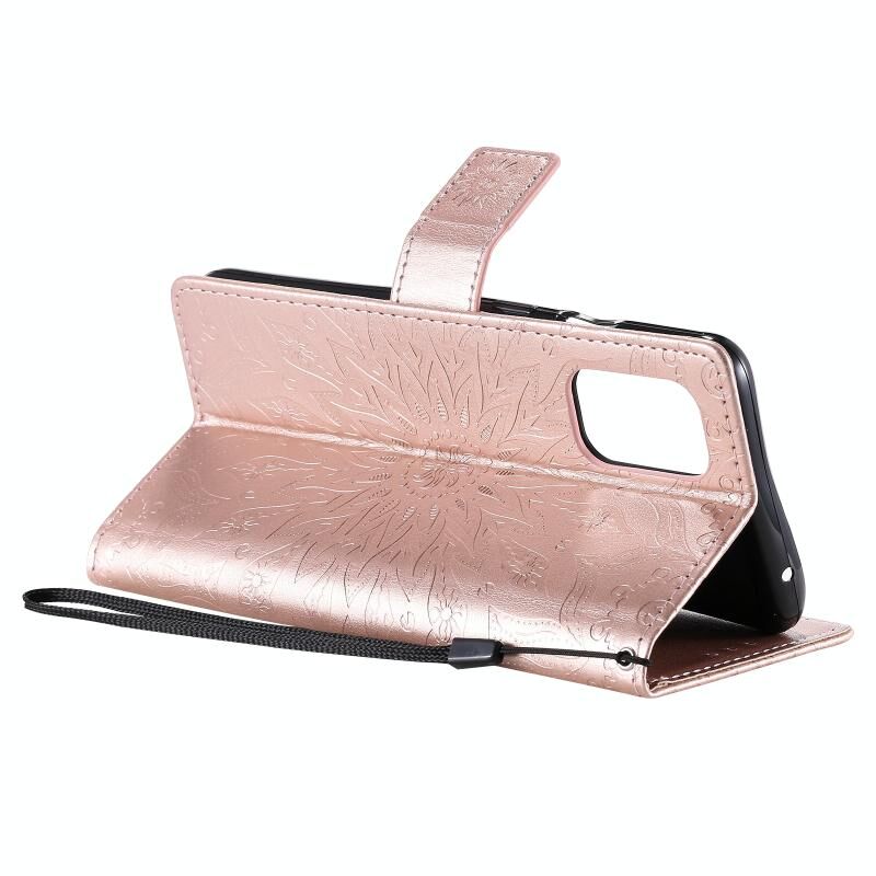 For OnePlus 8T Sun Embossing Pattern Horizontal Flip Leather Case with Card Slot & Holder & Wallet & Lanyard(Rose Gold)