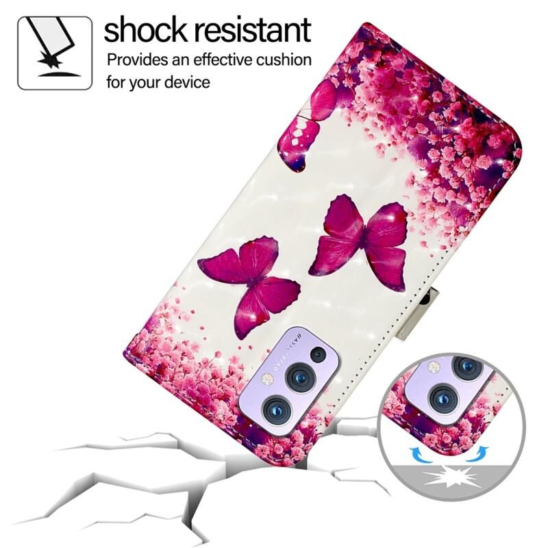 Θήκη τηλεφώνου από δέρμα με οριζόντια αναδίπλωση και τρισδιάστατη ζωγραφική για OnePlus 9 (Ροζ Πεταλούδα)