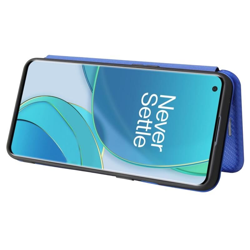 For OnePlus 9 Carbon Fiber Texture Horizontal Flip TPU + PC + PU Leather Case with Card Slot(Blue)