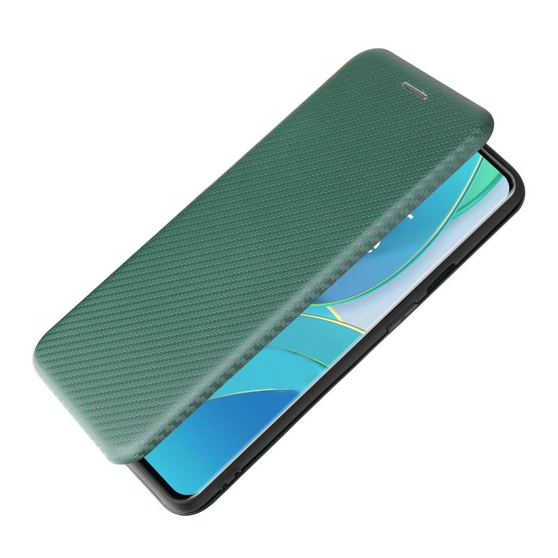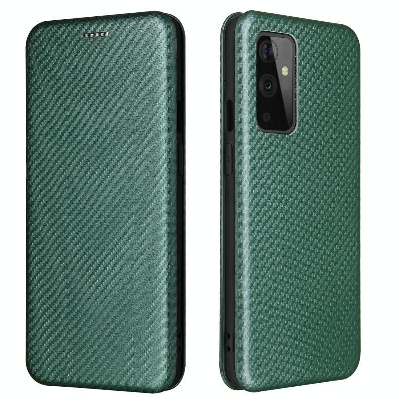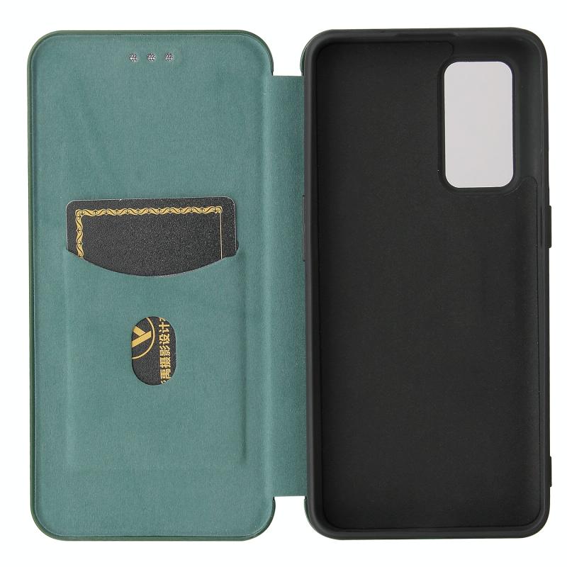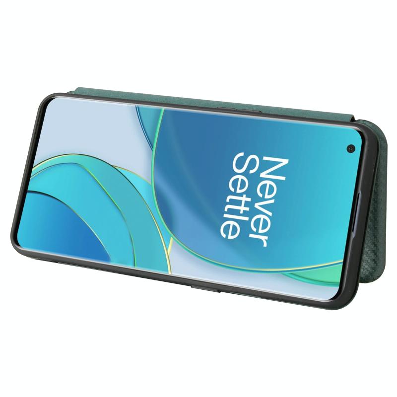 For OnePlus 9 Carbon Fiber Texture Horizontal Flip TPU + PC + PU Leather Case with Card Slot(Green)