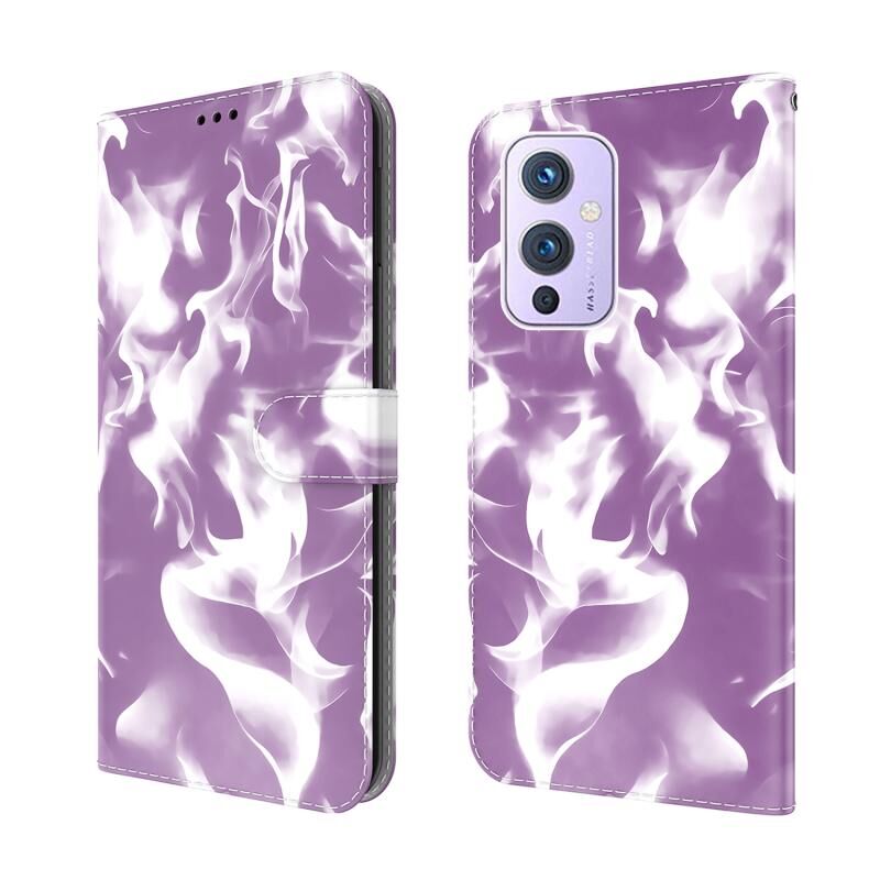 Για OnePlus 9 Cloud Fog μοτίβο οριζόντια Flip δερμάτινη θήκη με κάτοχο & υποδοχή για κάρτες & πορτοφόλι (μωβ)