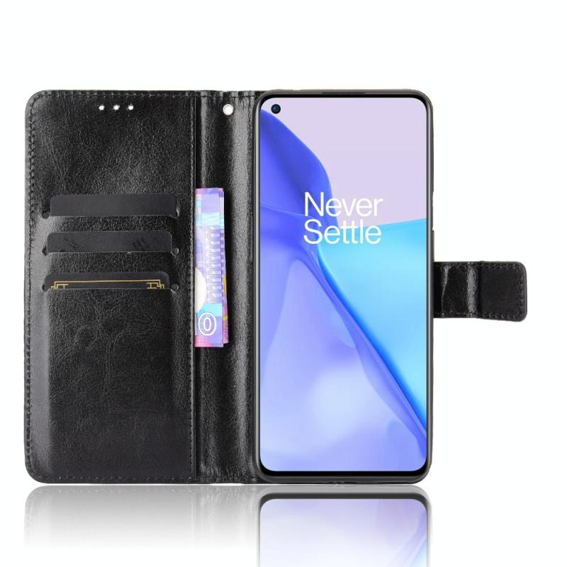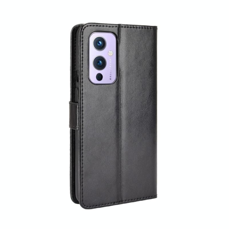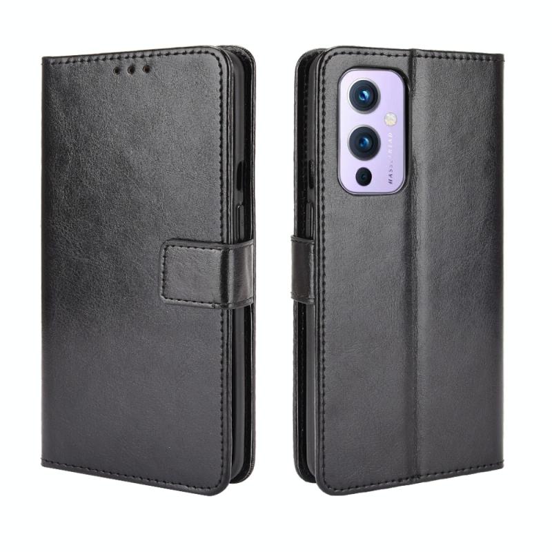 For OnePlus 9 (EU/US Version) Retro Crazy Horse Texture Horizontal Flip Leather Case with Holder & Card Slots & Lanyard(Black)