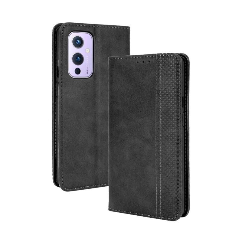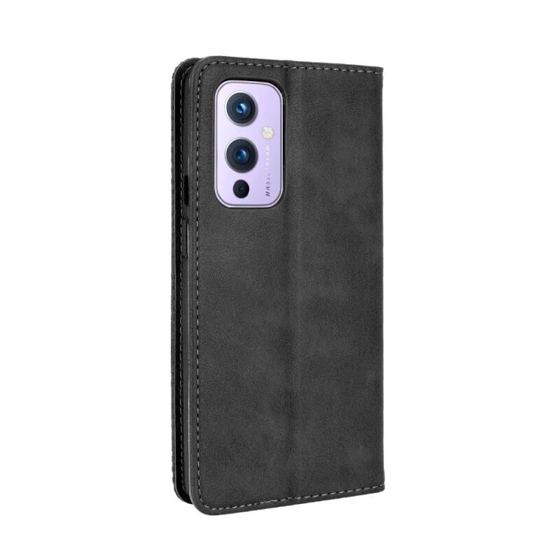For OnePlus 9 (Europe and America Version) Magnetic Buckle Retro Crazy Horse Texture Horizontal Flip Leather Case with Holder & Card Slots & Photo Frame(Black)
