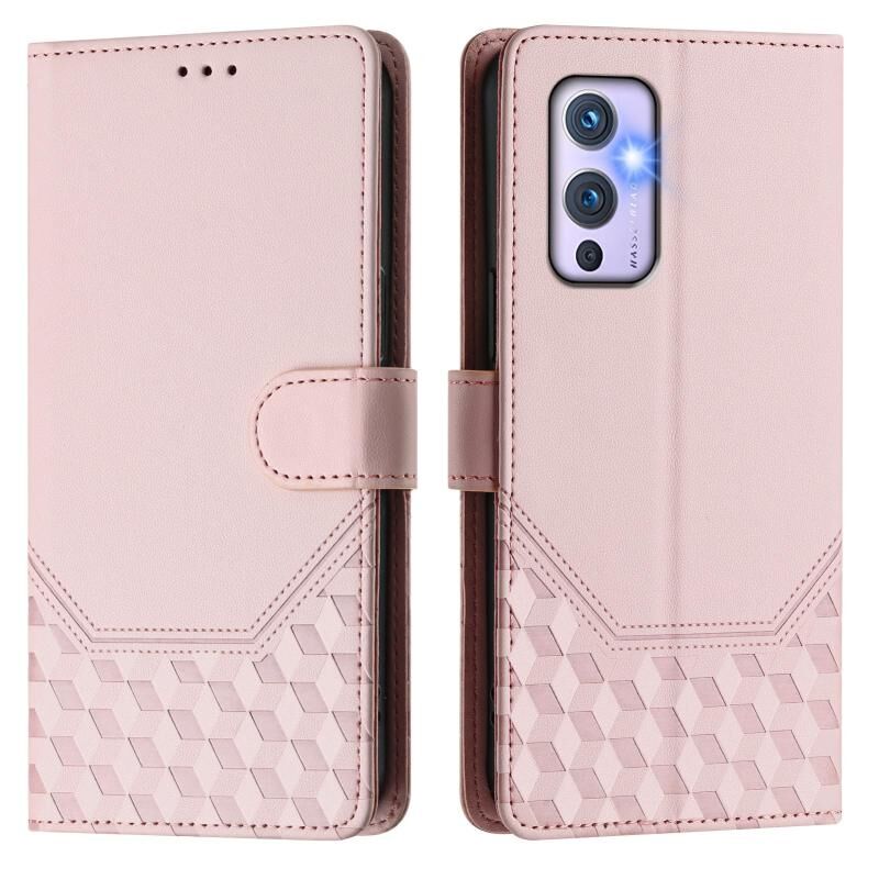Για OnePlus 9 Honeycomb ανάγλυφο RFID δερμάτινη θήκη τηλεφώνου (ροζ)