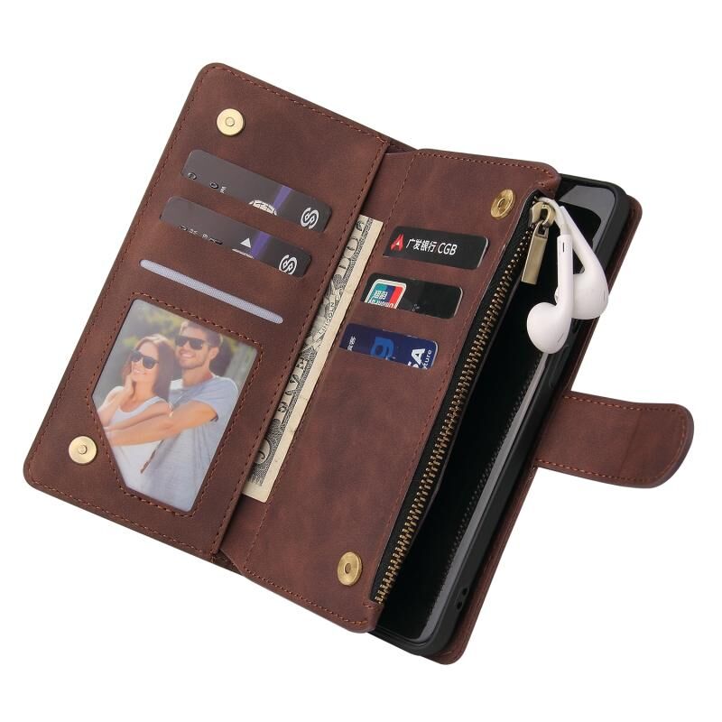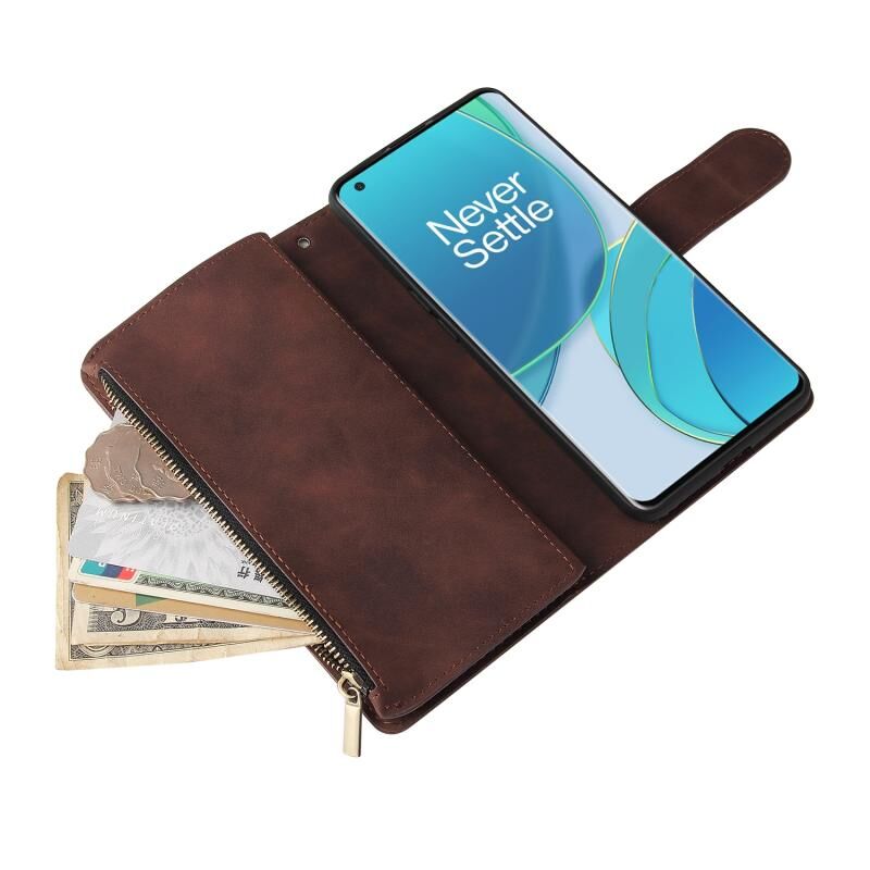 Για OnePlus 9 Πολυλειτουργικό παγωμένο φερμουάρ πορτοφόλι δερμάτινη θήκη τηλεφώνου (καφέ)