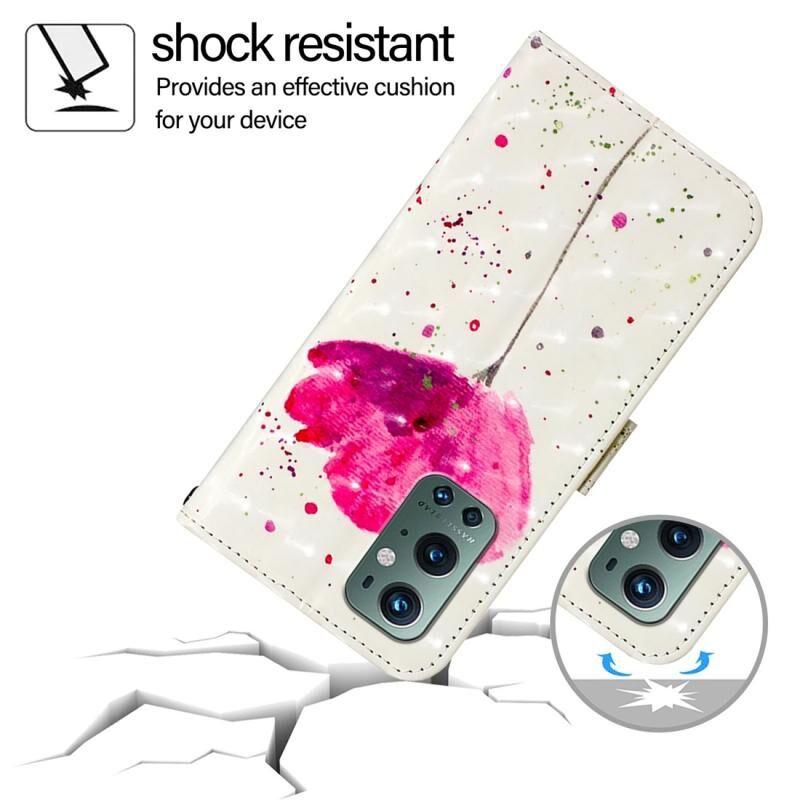 Θήκη τηλεφώνου από δέρμα με οριζόντιο άνοιγμα και τρισδιάστατη ζωγραφική για OnePlus 9 Pro (Λουλούδι)