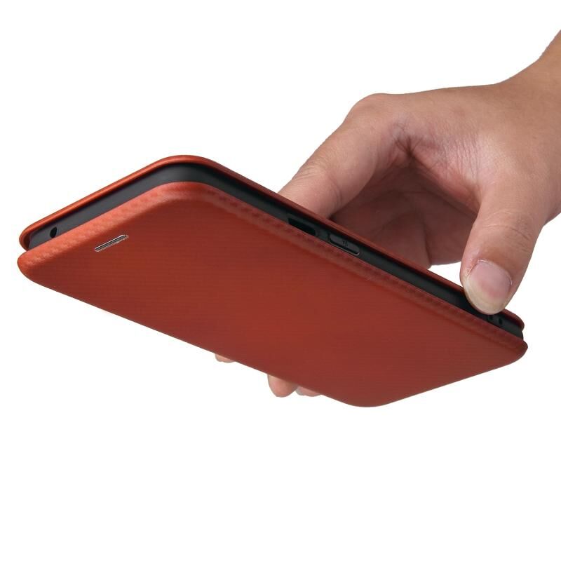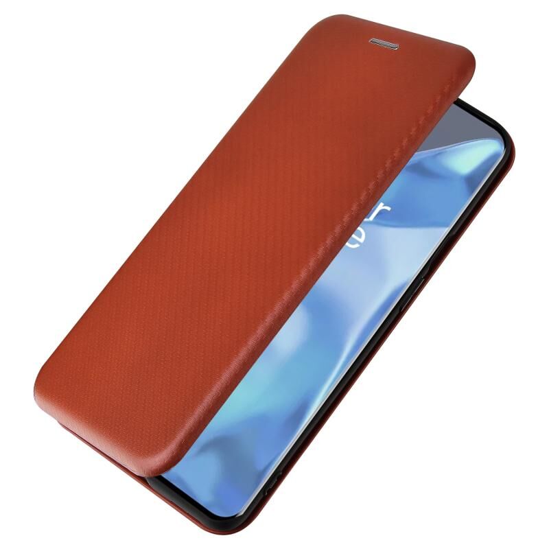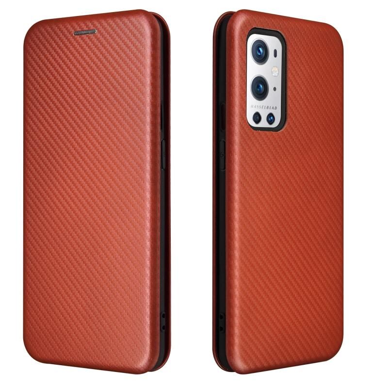 Για OnePlus 9 Pro Carbon Fiber υφή οριζόντια Flip TPU + PC + PU δέρμα υπόθεση με υποδοχή κάρτας (καφέ)