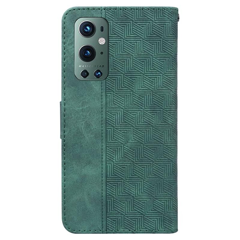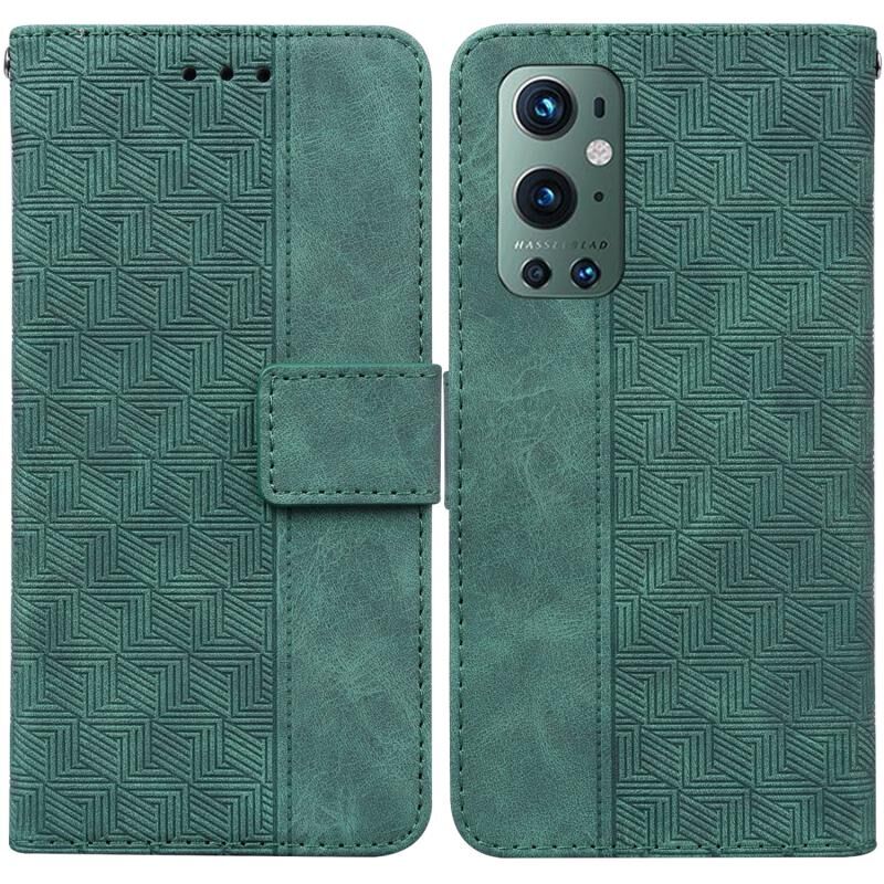 Για OnePlus 9 Pro γεωμετρική ανάγλυφη δερμάτινη θήκη τηλεφώνου (πράσινο)