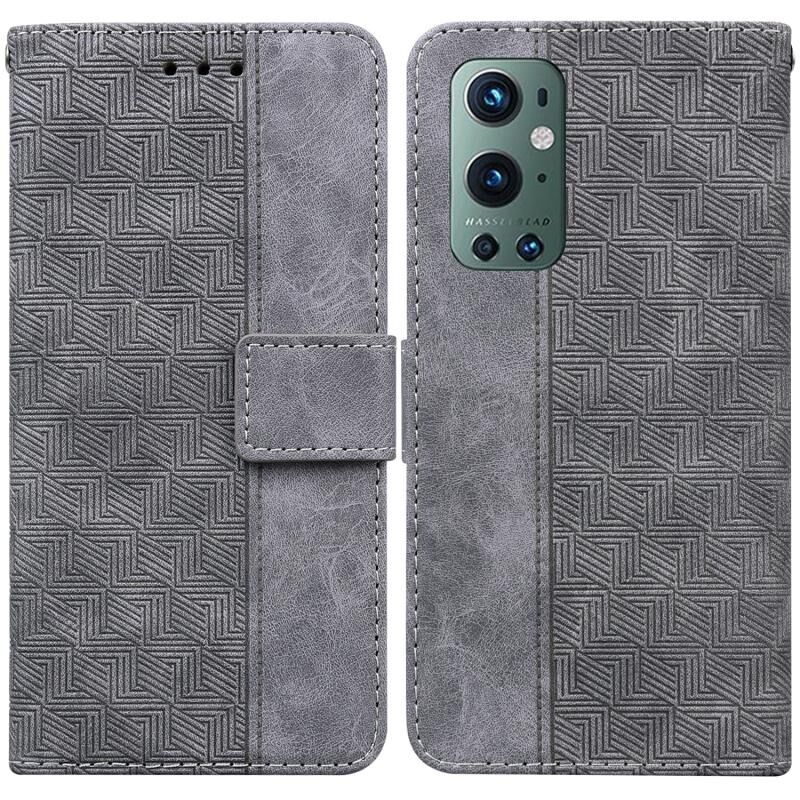 Για OnePlus 9 Pro γεωμετρική ανάγλυφη δερμάτινη θήκη τηλεφώνου (γκρι)