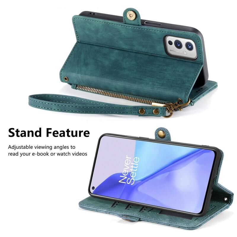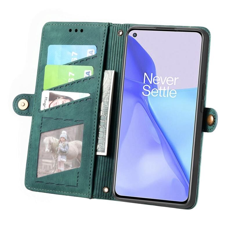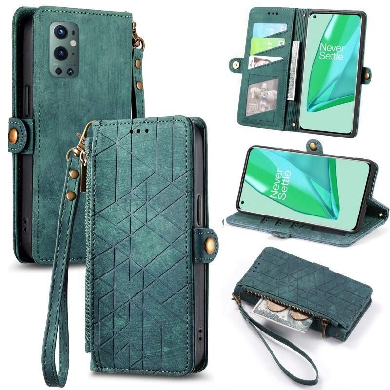 Για OnePlus 9 Pro γεωμετρική φερμουάρ πορτοφόλι πλευρά πόρπη δερμάτινη θήκη τηλεφώνου (πράσινο)