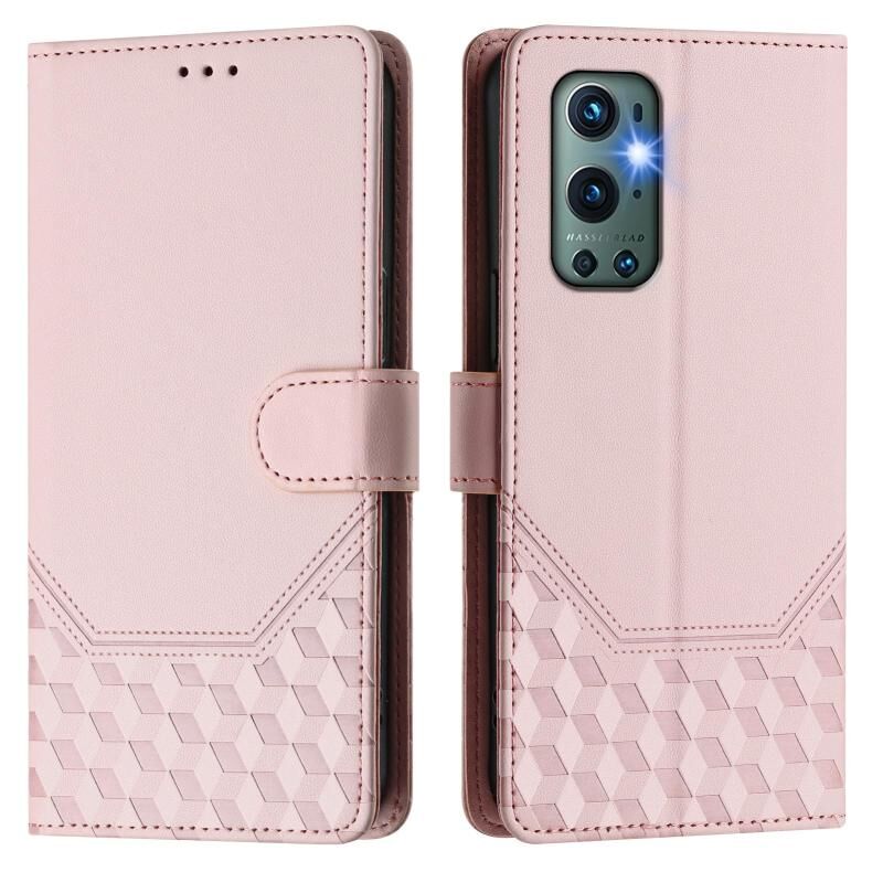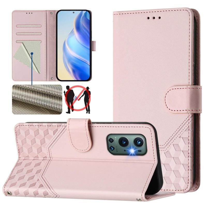 Για OnePlus 9 Pro Honeycomb ανάγλυφο RFID δερμάτινη θήκη τηλεφώνου (ροζ)