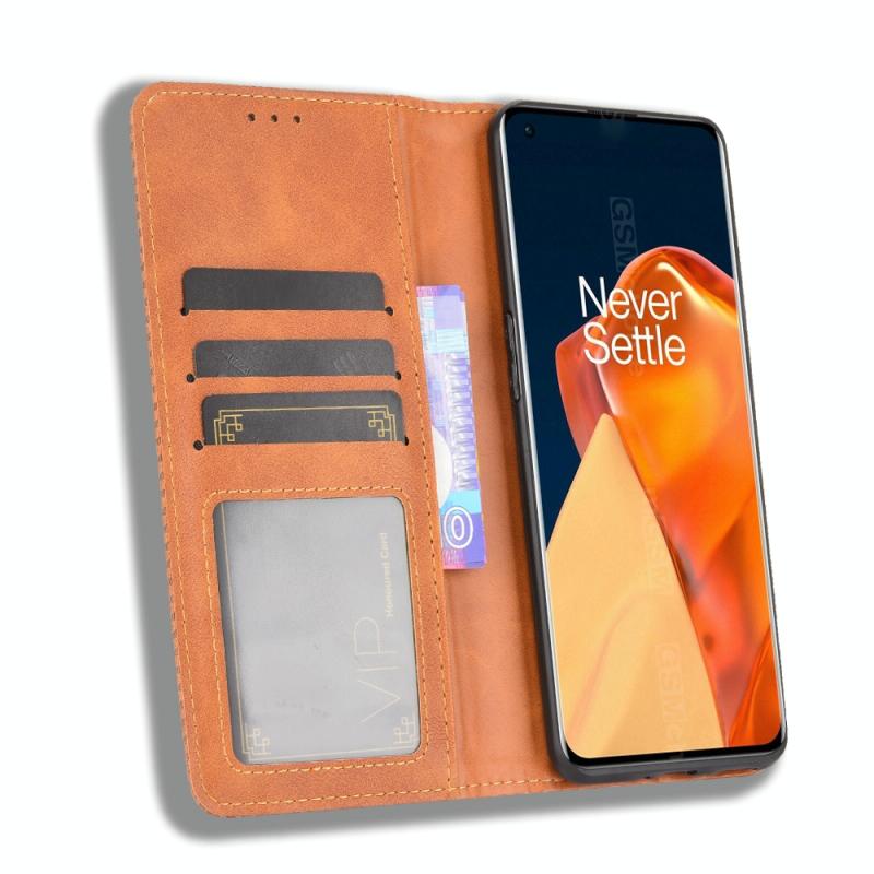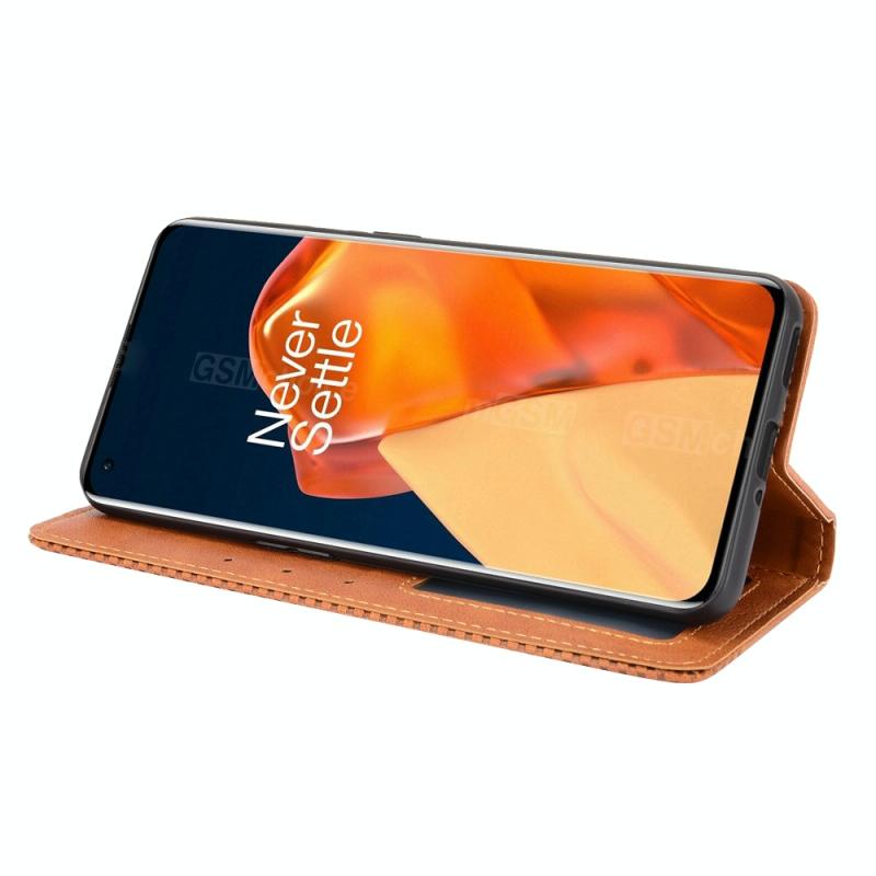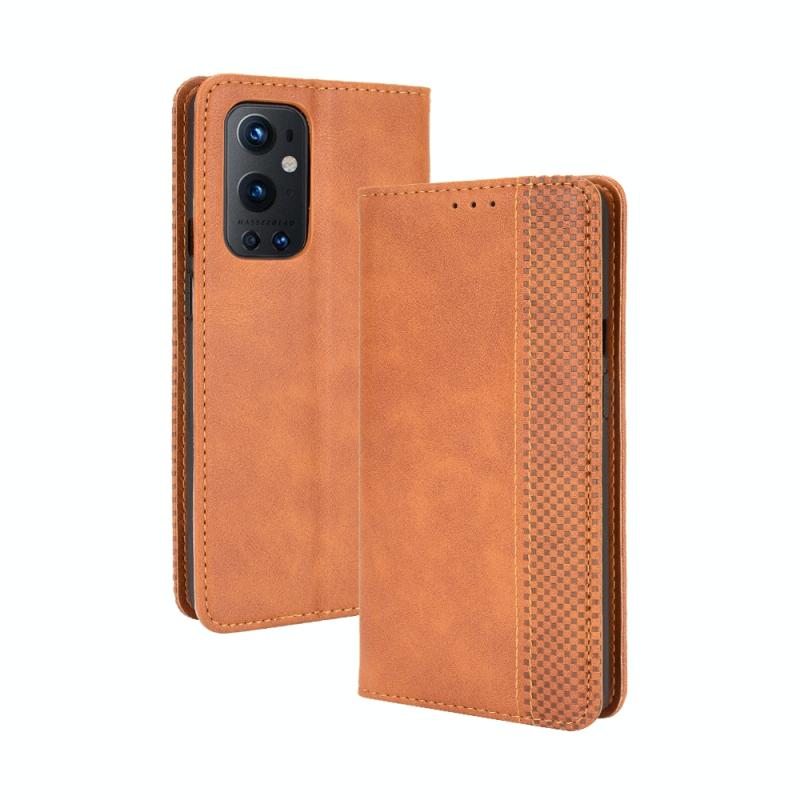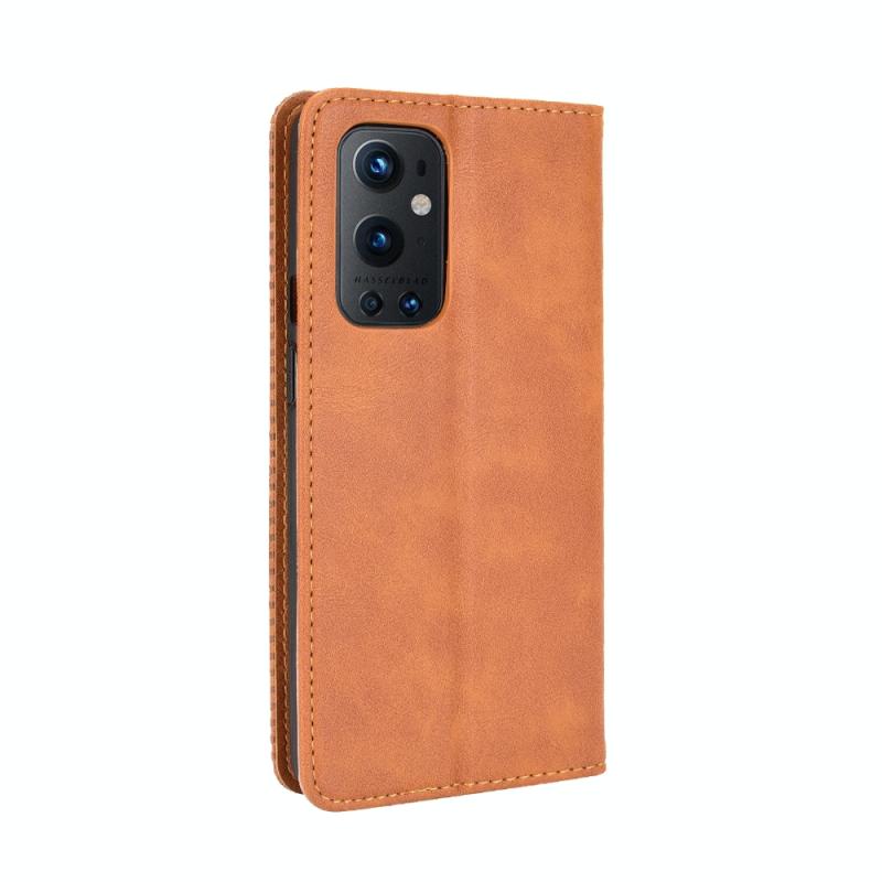 For OnePlus 9 Pro Magnetic Buckle Retro Crazy Horse Texture Horizontal Flip Leather Case with Holder & Card Slots & Photo Frame(Brown)