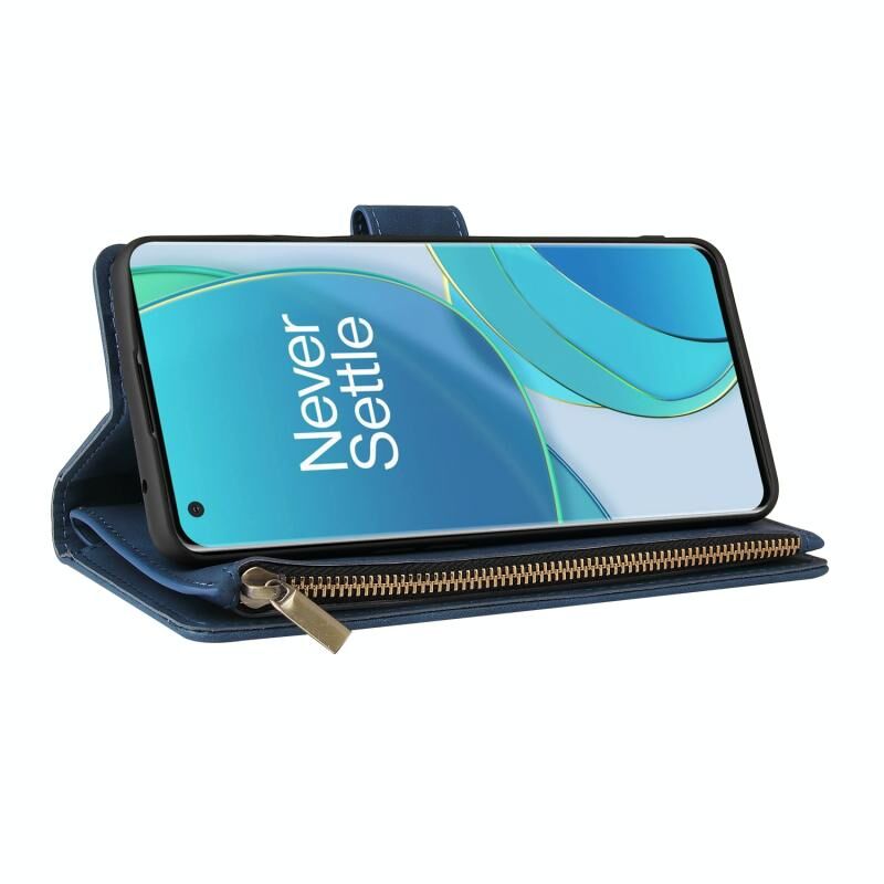Για OnePlus 9 Pro Πολυλειτουργικό παγωμένο φερμουάρ πορτοφόλι δερμάτινη θήκη τηλεφώνου (μπλε)