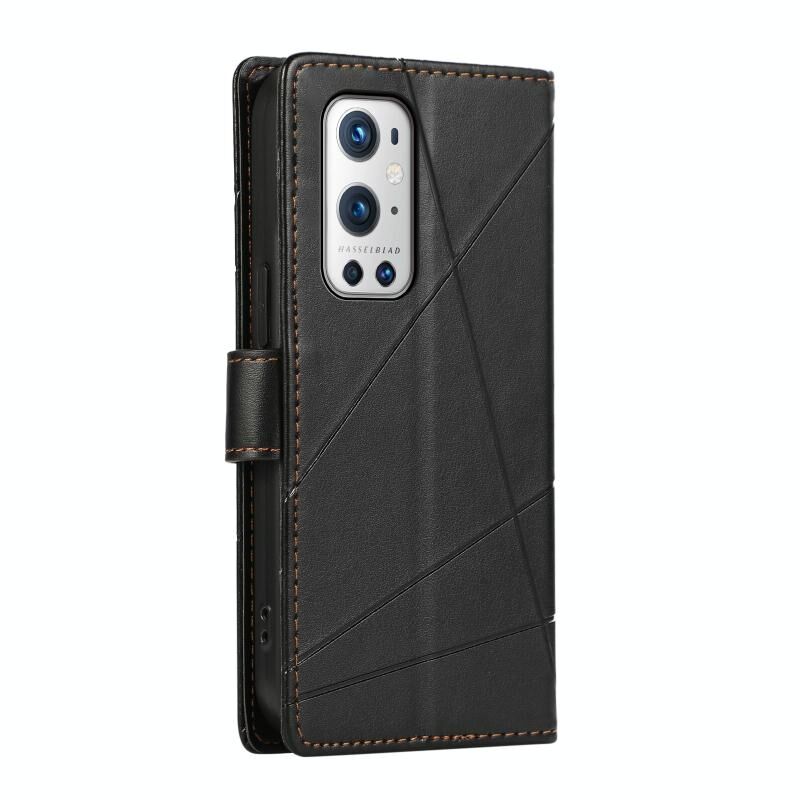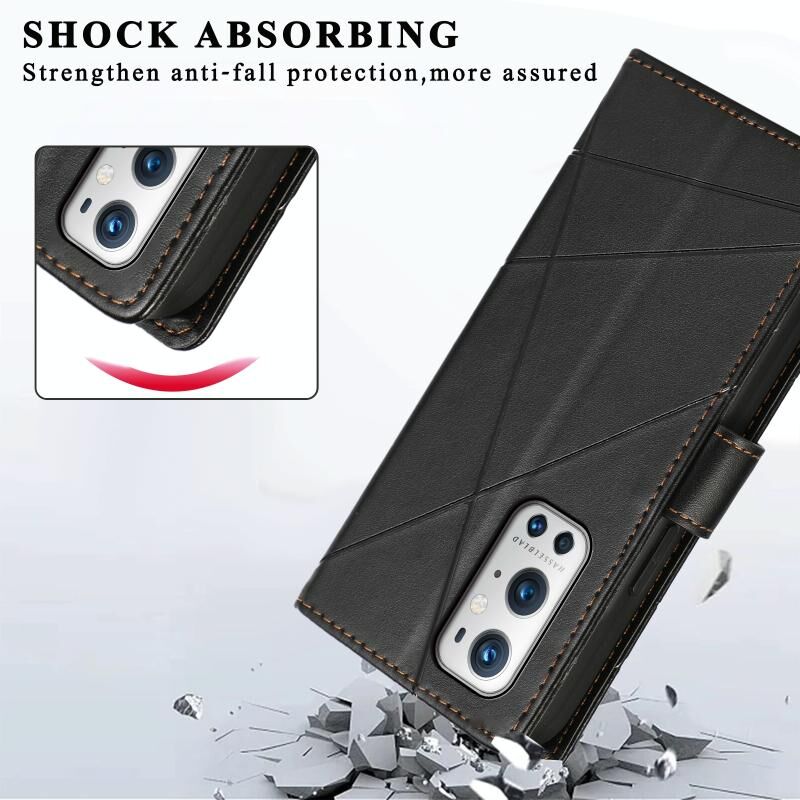 Θήκη τηλεφώνου OnePlus 9 Pro από γνήσιο δέρμα PU με ανάγλυφη υφή και λεπτομέρειες γραμμής (Μπλε)