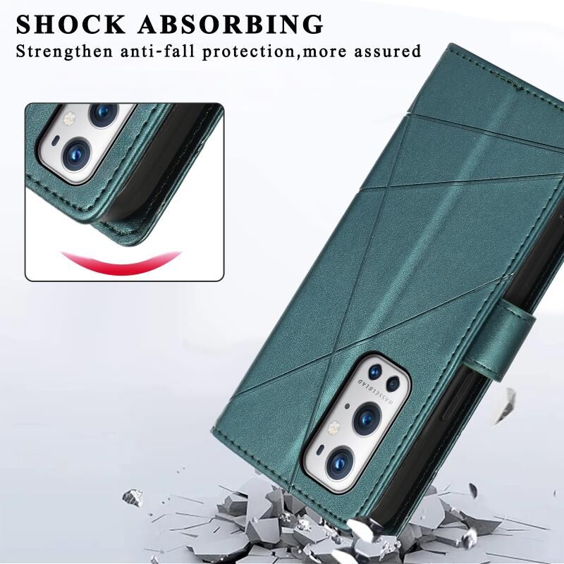Θήκη τηλεφώνου OnePlus 9 Pro από γνήσιο δέρμα PU με ανάγλυφη υφή και λεπτομέρειες γραμμής (Μπλε)