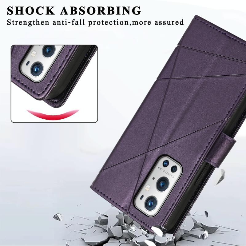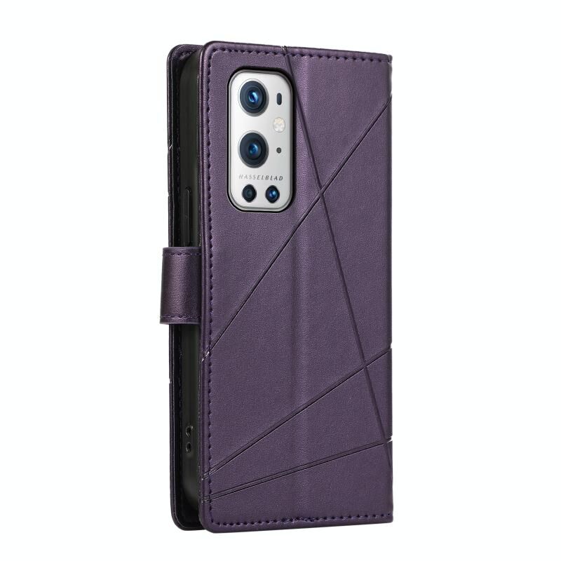 Θήκη τηλεφώνου OnePlus 9 Pro από γνήσιο δέρμα PU με ανάγλυφη υφή και λεπτομέρειες γραμμής (Μπλε)