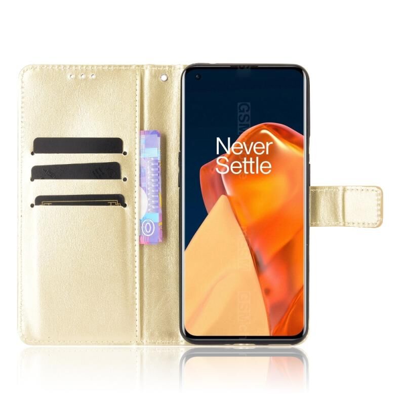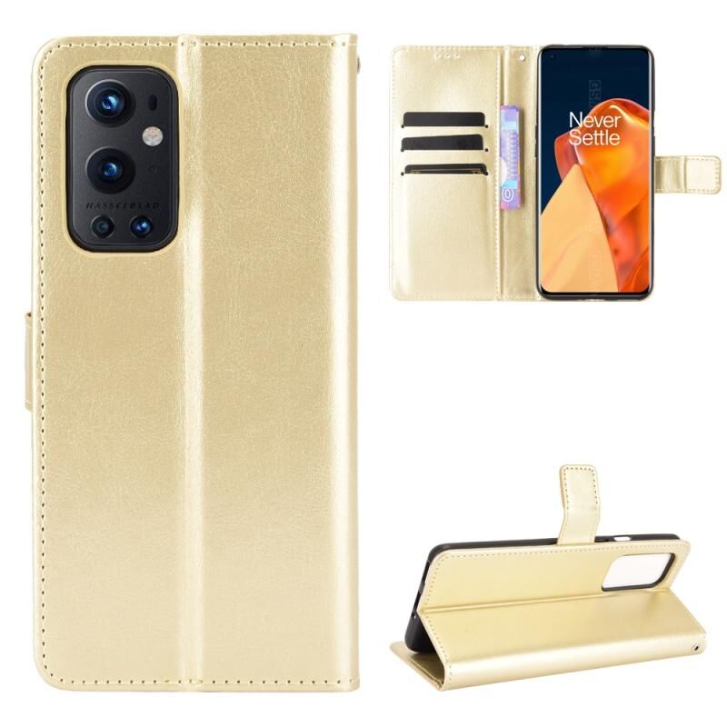 For OnePlus 9 Pro Retro Crazy Horse Texture Horizontal Flip Leather Case with Holder & Card Slots & Lanyard(Gold)