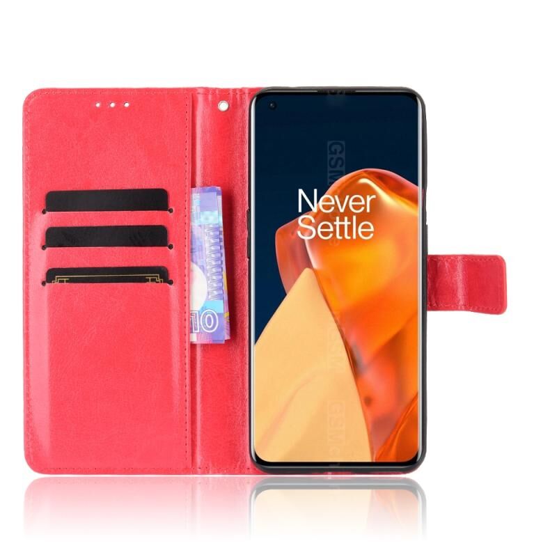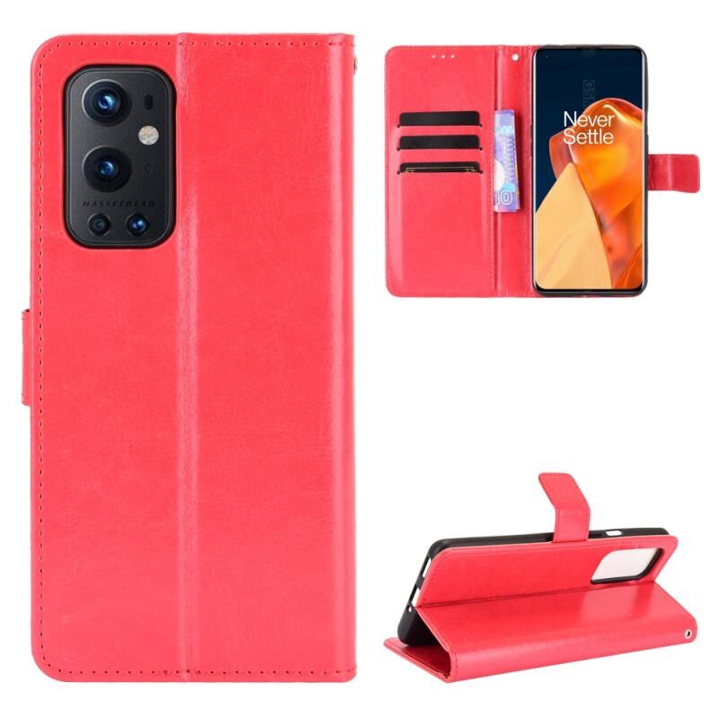 For OnePlus 9 Pro Retro Crazy Horse Texture Horizontal Flip Leather Case with Holder & Card Slots & Lanyard(Red)