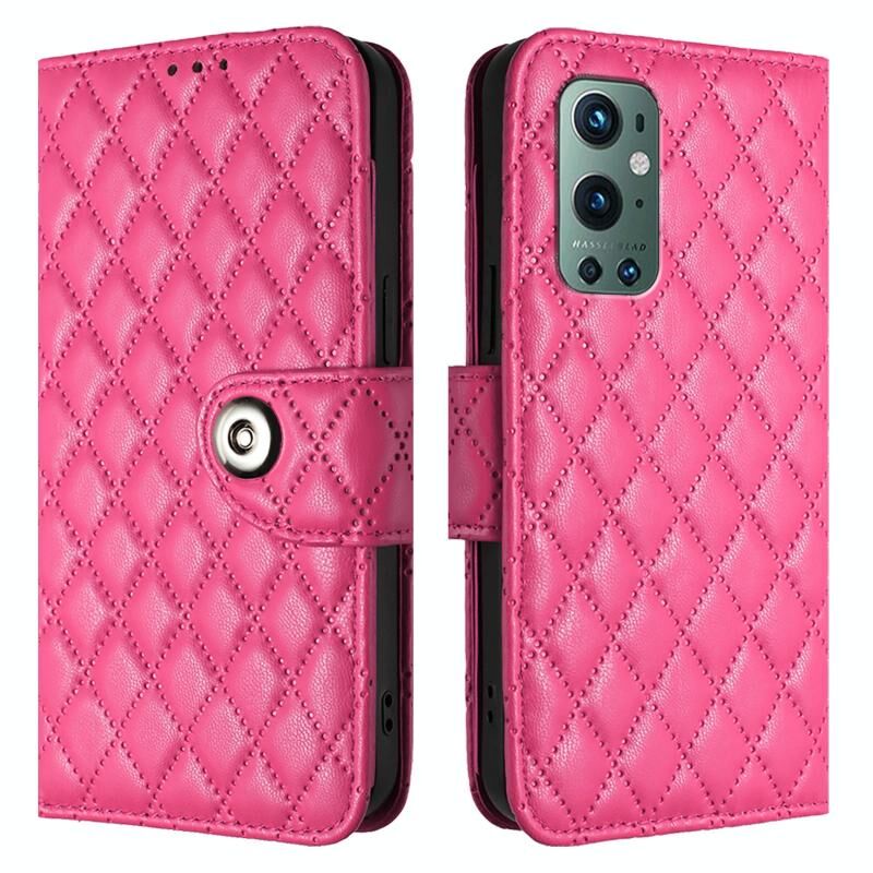 Για το OnePlus 9 Pro Rhombic Texture Flip δερμάτινη θήκη τηλεφώνου με κορδόνι (Rose Red)