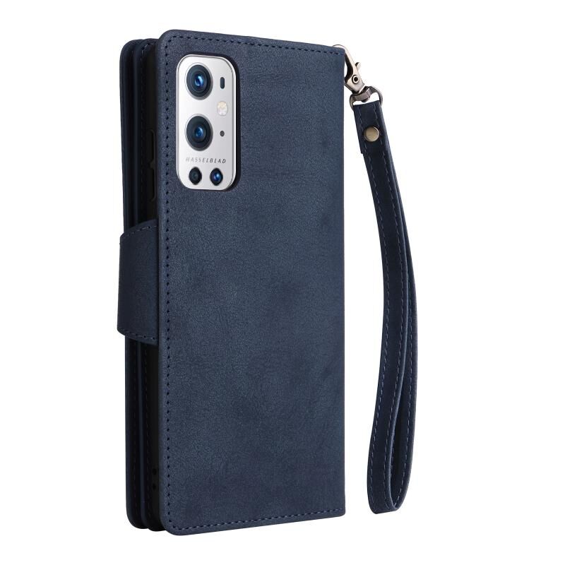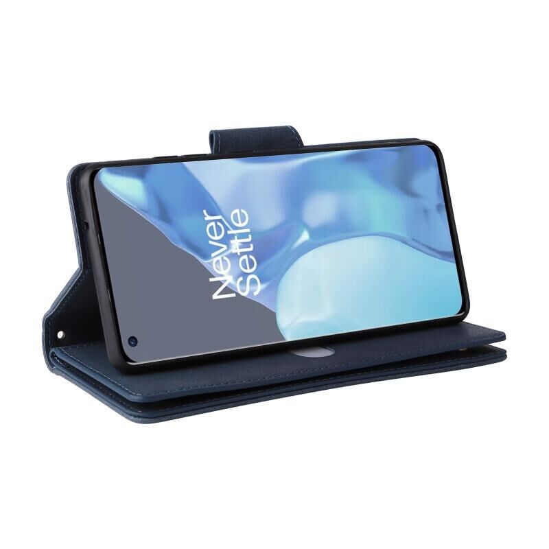 Για OnePlus 9 Pro Rivet πόρπη 9 κάρτες τρεις φορές δερμάτινη θήκη τηλεφώνου (μπλε)