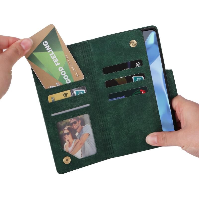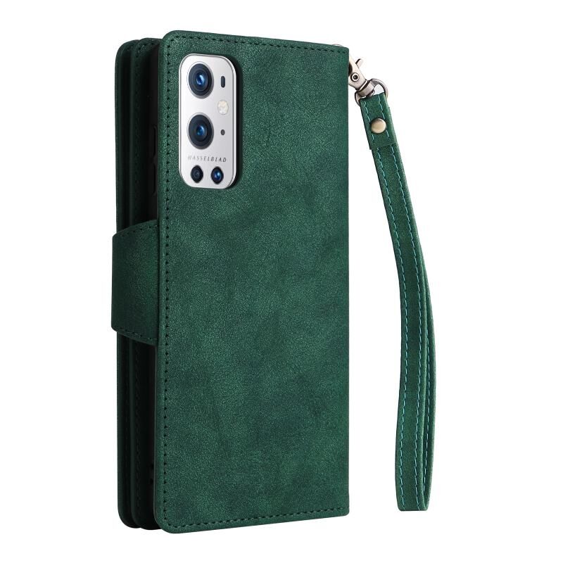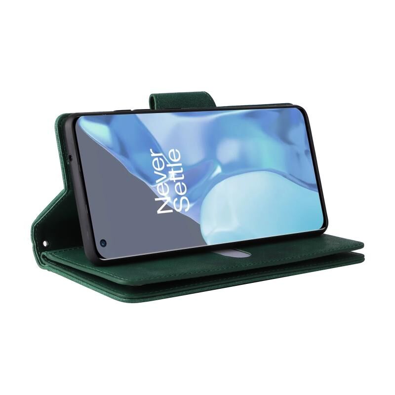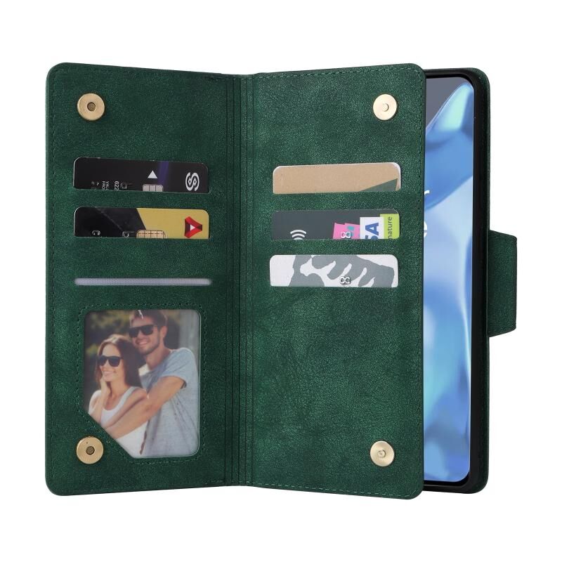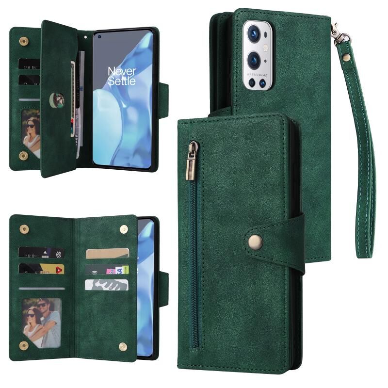 Για OnePlus 9 Pro Rivet πόρπη 9 κάρτες τρεις φορές δερμάτινη θήκη τηλεφώνου (πράσινο)