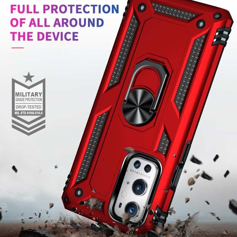 Για OnePlus 9 Pro Shockproof TPU + PC προστατευτική θήκη με 360 μοίρες περιστρεφόμενη θήκη (κόκκινο)