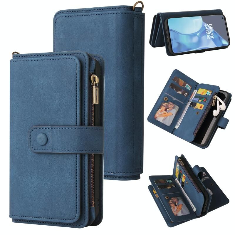 Για OnePlus 9 Pro Skin Feel PU + TPU Οριζόντια Flip δερμάτινη θήκη με κάτοχο & 15 κάρτες Slot & πορτοφόλι & φερμουάρ τσέπη & Lanyard (μπλε)