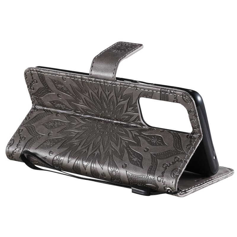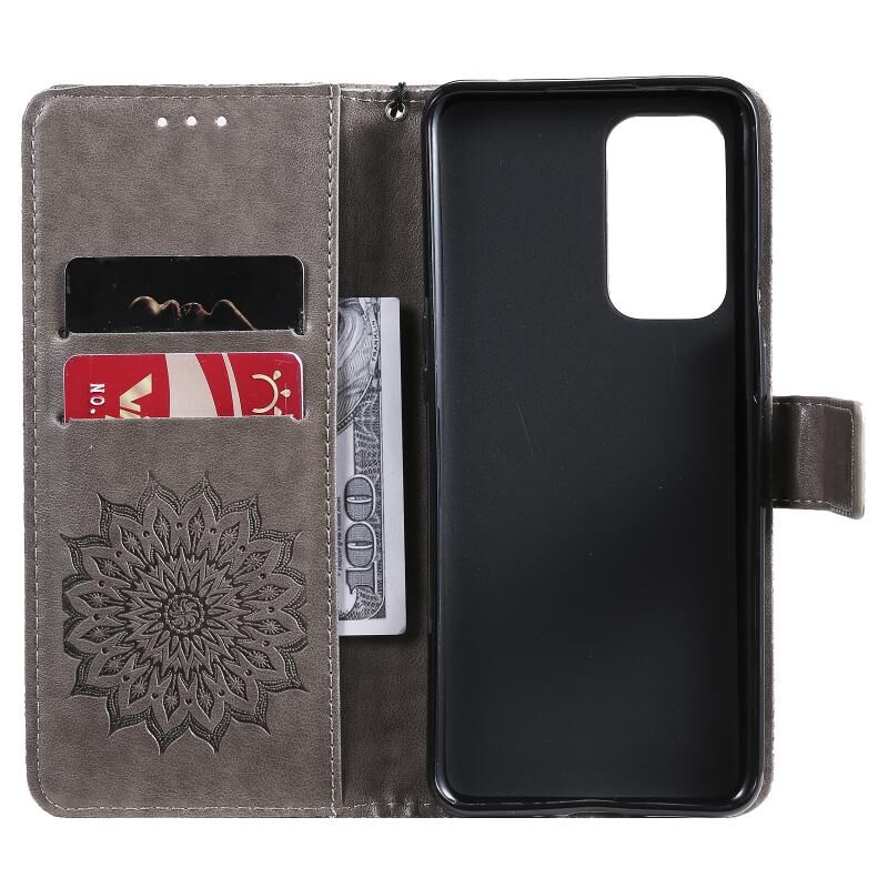 Για OnePlus 9 Pro Sun ανάγλυφο μοτίβο οριζόντια Flip δερμάτινη θήκη με υποδοχή κάρτας & κάτοχος & πορτοφόλι & Lanyard (γκρι)