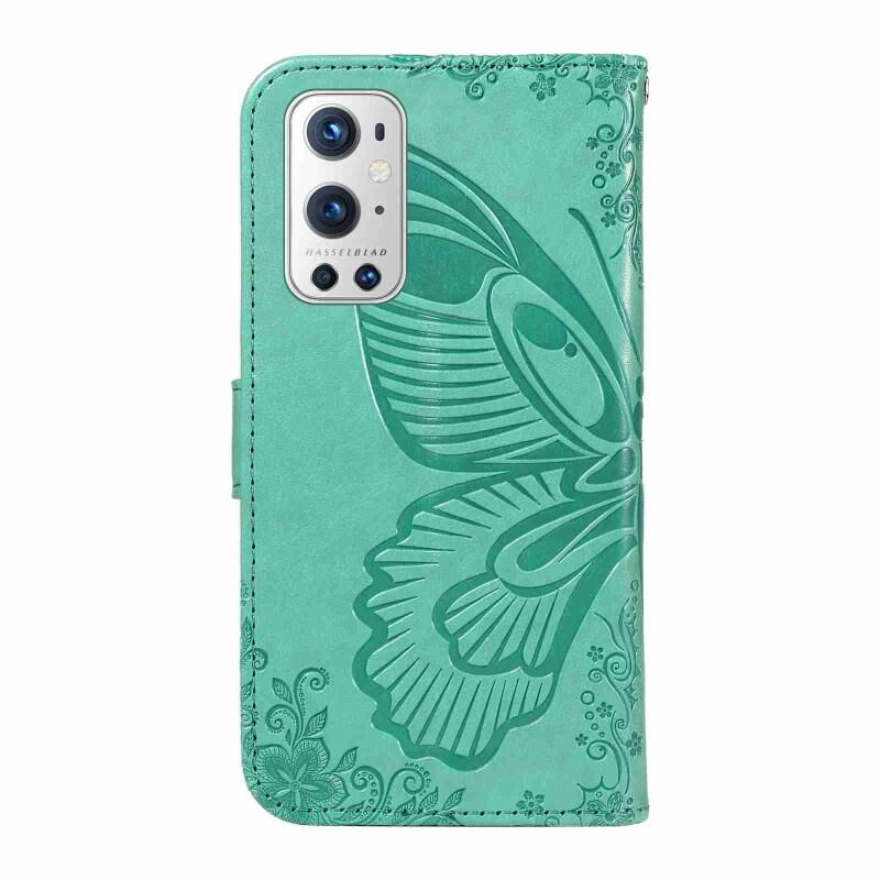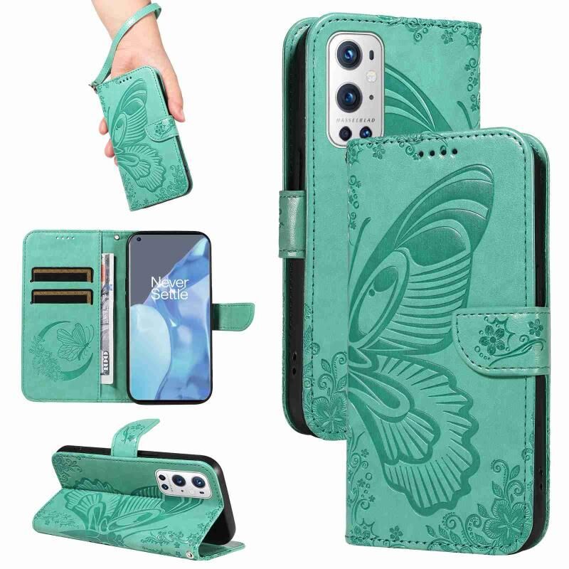 Θήκη τηλεφώνου από δέρμα με ανάγλυφο σχέδιο πεταλούδας Swallowtail για OnePlus 9 Pro (Μπλε)