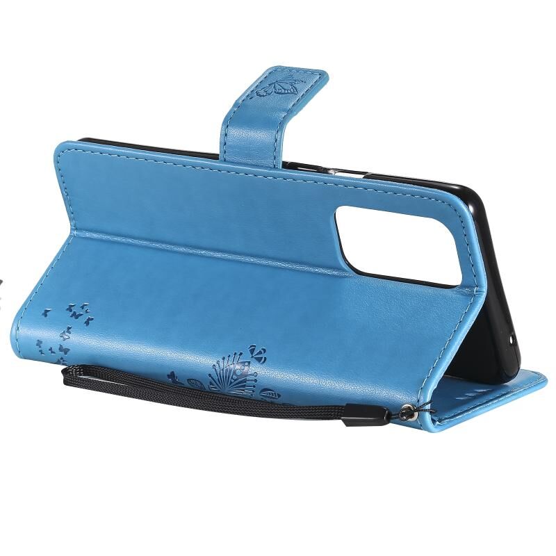 Για OnePlus 9 Pro Tree & Cat Pattern Pressed εκτύπωση οριζόντια Flip PU δέρμα υπόθεση με κάτοχο & υποδοχές για κάρτες & πορτοφόλι & κορδόνι (μπλε)