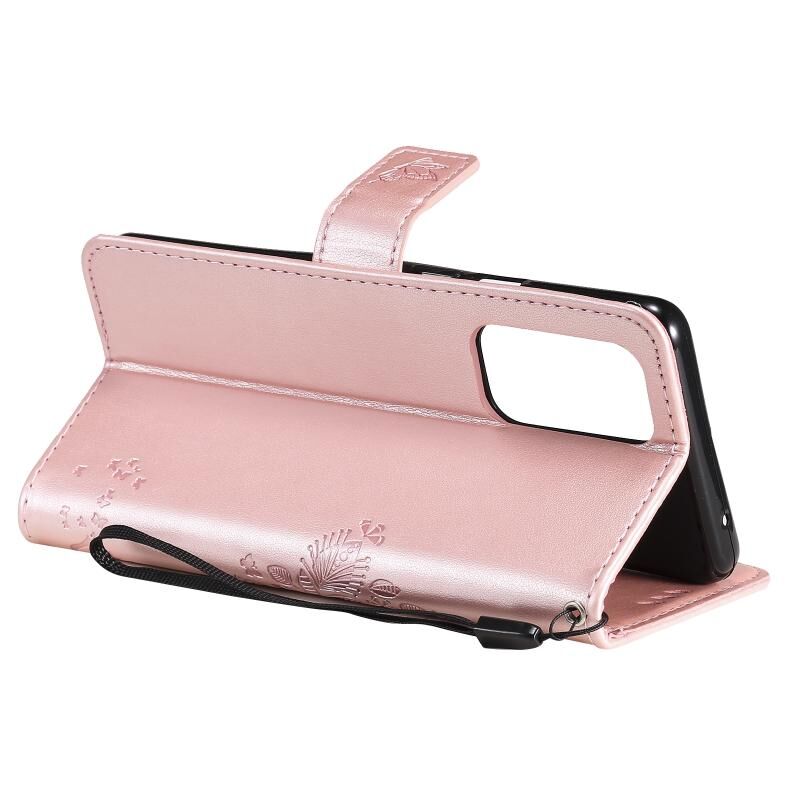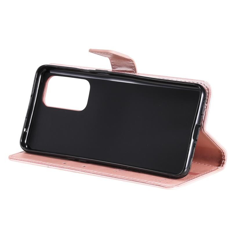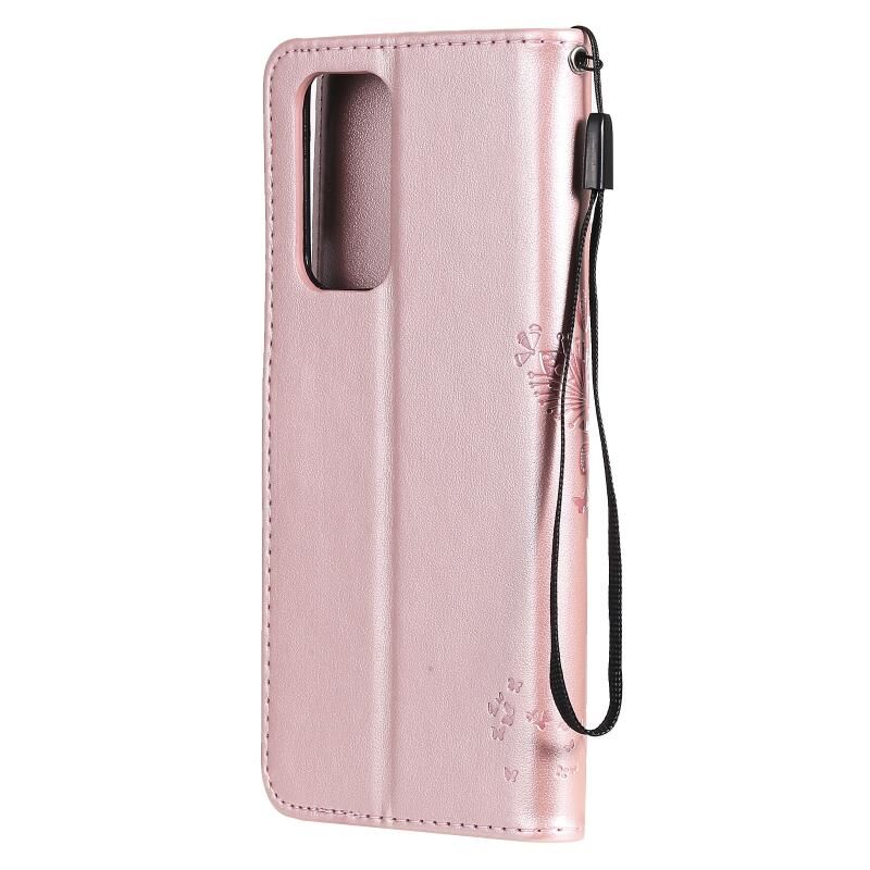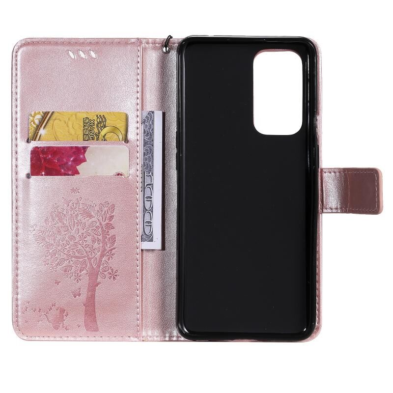 Για OnePlus 9 Pro Tree & Cat Pattern Pressed εκτύπωση οριζόντια Flip PU δερμάτινη θήκη με κάτοχο & υποδοχές καρτών & πορτοφόλι & κορδόνι (Rose Gold)