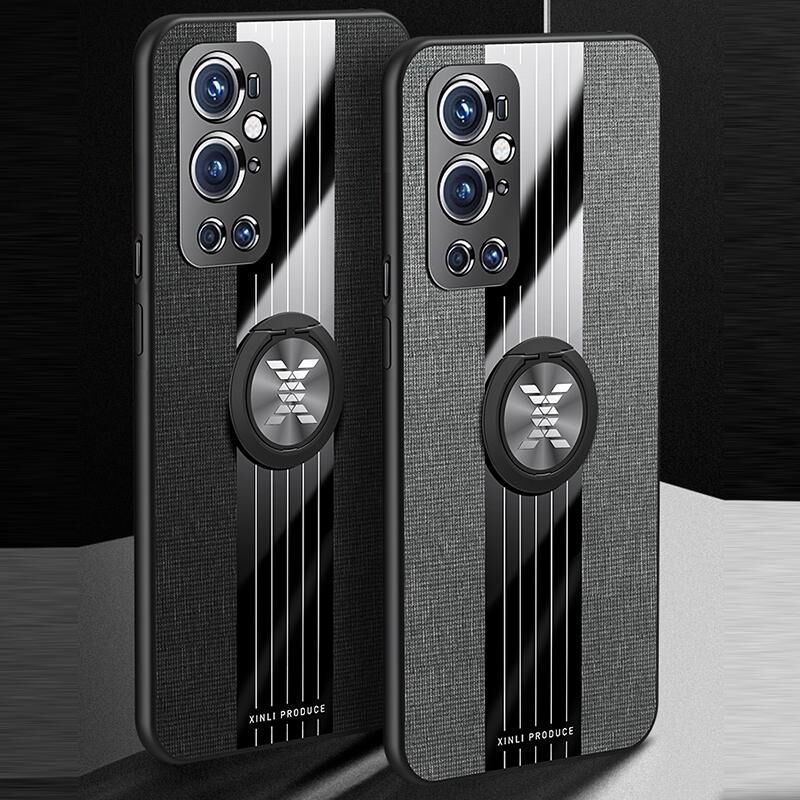 Για OnePlus 9 Pro XINLI ραφή ύφασμα Υφή TPU υπόθεση τηλεφώνου με κάτοχο δαχτυλίδι (καφέ) (XINLI)