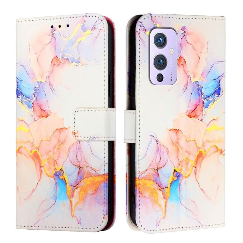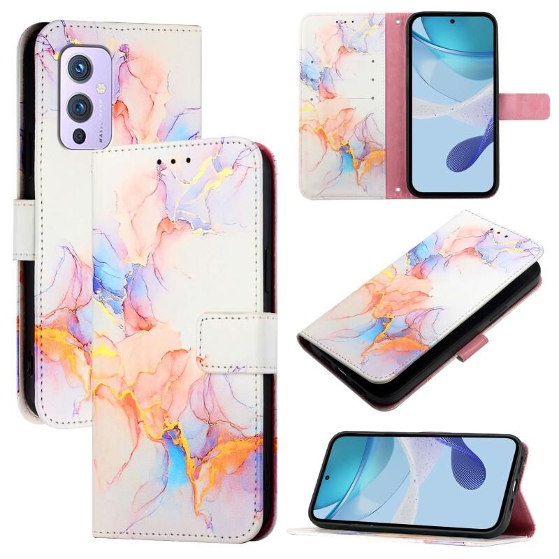 For OnePlus 9 PT003 Marble Pattern Flip Leather Phone Case(Galaxy Marble White)