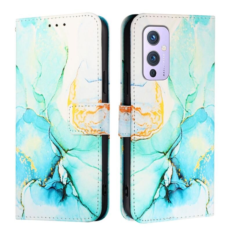 For OnePlus 9 PT003 Marble Pattern Flip Leather Phone Case(Green)