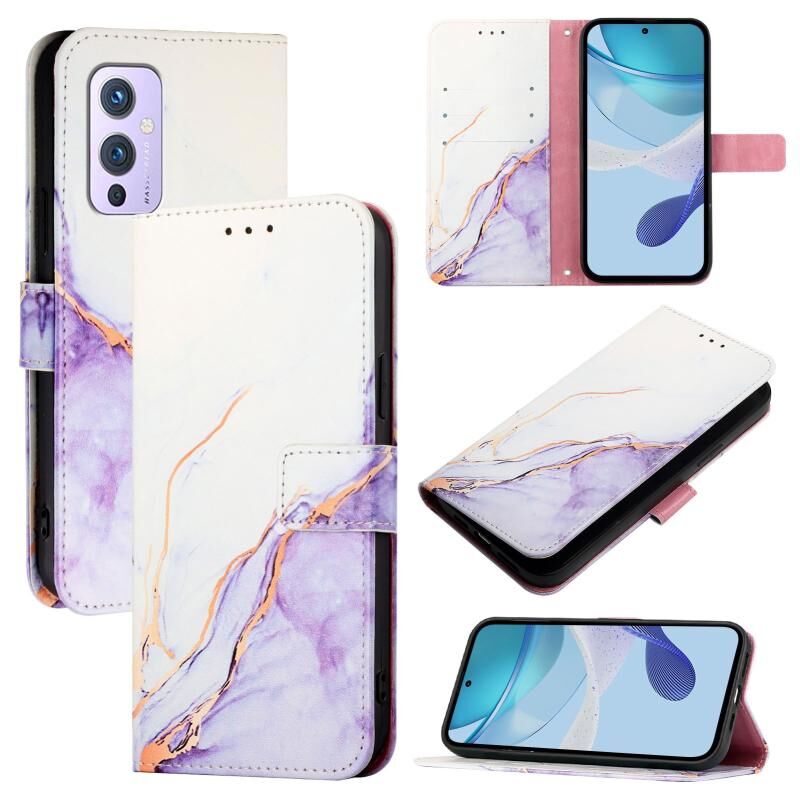 For OnePlus 9 PT003 Marble Pattern Flip Leather Phone Case(White Purple)