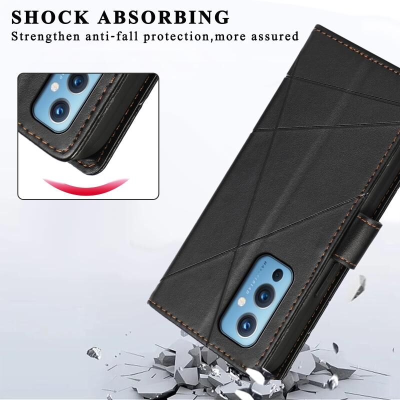 Θήκη τηλεφώνου OnePlus 9 από γνήσιο δέρμα PU με ανάγλυφη υφή και λεπτομέρειες (Μπλε)