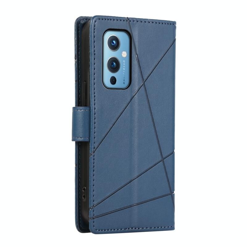 Θήκη τηλεφώνου OnePlus 9 από γνήσιο δέρμα PU με ανάγλυφη υφή και λεπτομέρειες (Μπλε)