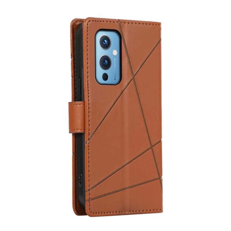 Θήκη τηλεφώνου OnePlus 9 από γνήσιο δέρμα PU με ανάγλυφη υφή και λεπτομέρειες (Μπλε)