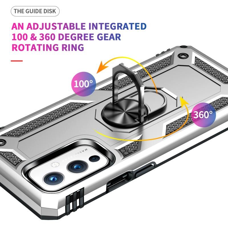 Για OnePlus 9 Shockproof TPU + PC προστατευτική θήκη με 360 μοίρες περιστρεφόμενη θήκη (ασημί)