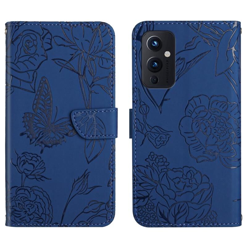 Θήκη τηλεφώνου OnePlus 9 με δέρμα ανάγλυφο, με σχέδιο πεταλούδας και παιώνιας (Κόκκινο)